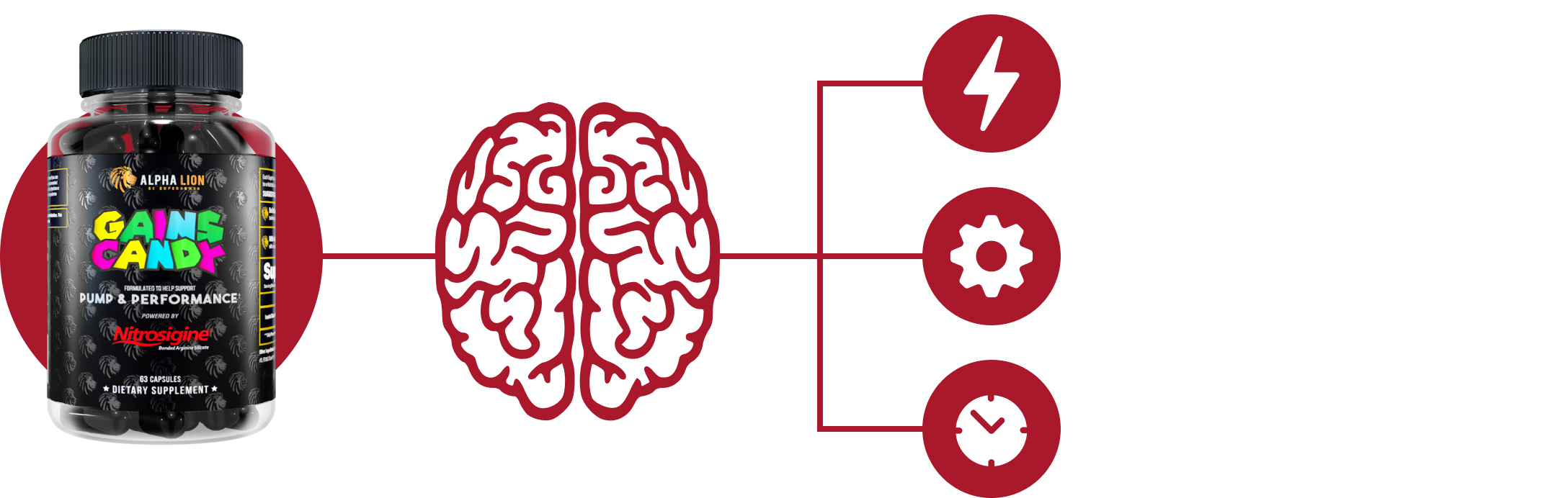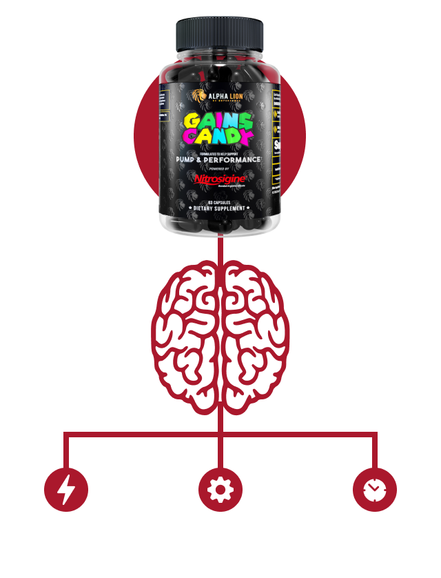 Gains Candy™ Nitrosigine® helps promote more than just wild vascularity. New studies have shown that Nitrosigine® aids in improved cognition including mental focus, working memory, and mental acuity.† Nothing better than brain gains!